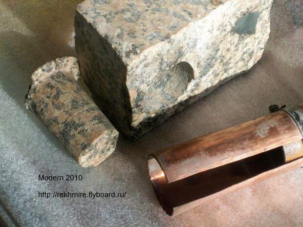 Так якобы сверлили гранит в Древнем Египте по представлениям египтологов. Существуют вопросы к скорости такого сверления. Но допустим, что сверлили. А чем можно сделать десятки тысяч отверстий? На одном блоке я насчитал в среднем 39 кругов по 15 отверстий. Таких блоков как минимум на фотографиях 100 шт. А на самом деле в разы больше. Если на одно отверстие методом сверления тратить 1 час, то понадобится: 58500 часов. Или… 16 лет работы одним мастером по 10 часов в день.