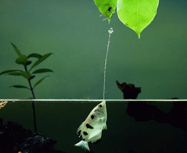 Рыба-брызгун – снайпер среди животных. Умеет сбивать струей воды насекомых на ветках на расстоянии более метра. И учитывает преломление света на границе вода-воздух! Вшитые в алгоритм этого инстинкта расчеты и поправки. Феноменально!