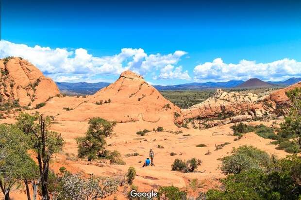 2. Цвет песчаников. На заднем фоне виден конус вулкана. Магматического вулкана (по гугл-карте – вокруг конуса черные базальтовые разливы). Это говорит о том, что когда-то эта территория была геологически активной.