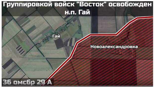 Штурмовые подразделения 36-й гвардейской мотострелковой бригады 29-й армии группировки войск «Восток» решительным броском от Вишнёвого на северо-запад освободили населённый пункт Гай Днепропетровской области. Взяли под контроль важный дорожный узел на Покровское и Отрадное, а также участок местности площадью более 5 квадратных километров.