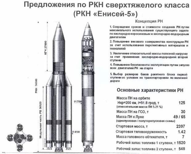 И вот с 2017 г. Роскосмос начал создание сверхтяжелой ракеты «Енисей», способной выводить пилотируемые аппараты на окололунную орбиту массой до 27 тонн. Или на околоземную орбиту – до 103 тонн.