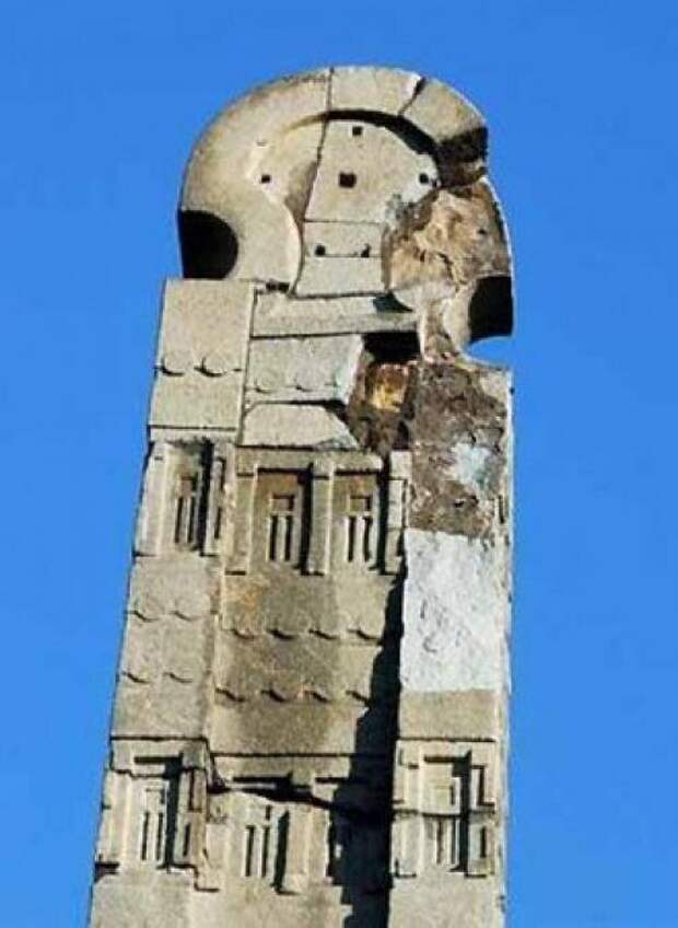 Решил поискать фотографии верхней части обелисков и посмотреть, есть ли какие-то следы на высоте в камне: