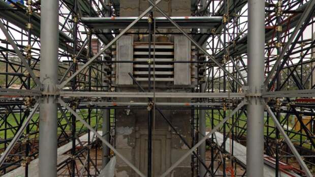 Два мощных крана приподнимают сегмент стелы, а потом внутри фермы из металлических лесов начинается процесс подъема блока. И что бы так делали древние и поднимали 500 тонн – трудно представить. Я бы рассмотрел именно версию послойной отливки (формовки) стел из еще тогда мягкого геобетона.